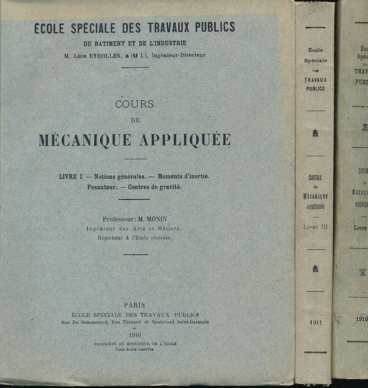 Ecole Spéciale des travaux publics 1910 Paris Ecole Spéciale des Travaux Publics 1910 - 1912, 3 volumes In-8 brochés. 427 + 533 + 438 pages. Trés bon état.