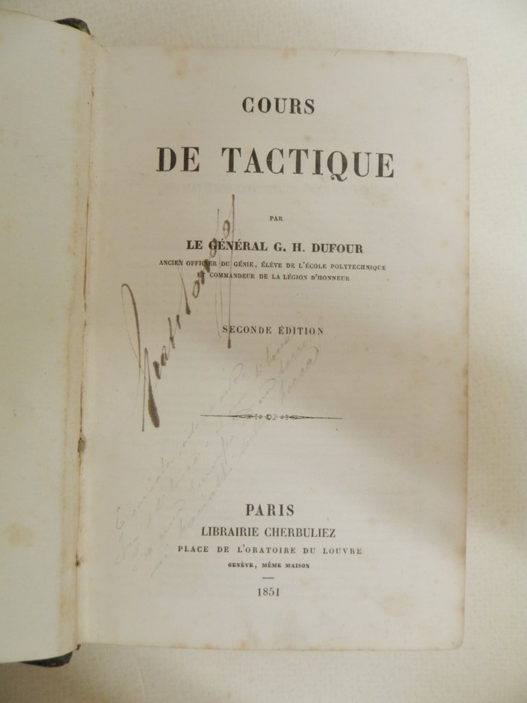 16°, pp. XIII, 377, 21 tavole incise su carta forte, alcune delle quali ripiegate, legatura coeva in mezza pelle, titolo in oro al dorso, piatti spruzzati, rare sottolineature a matita, alcuni appunti alla prima carta bianca e al frontespizio. Esemplare molto buono. Lezioni alla scuola militare di Thun. Esemplare molto buono. *** TUTTI I NOSTRI LIBRI SONO VISIBILI PREVIO CONTATTO MAIL O TELEFONO NELLA NUOVA SEDE DI MILANO: LIBRERIA COSMOPOLIS, VIA JOMMELLI, 22. ***