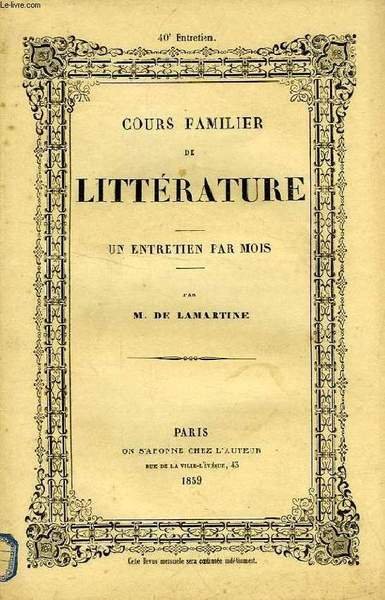 COURS FAMILIER DE LITTERATURE, XLe ENTRETIEN, LITTERATURE VILLAGEOISE, APPARITION D'UN POEME EPIQUE EN PROVENCE | Libri antichi e moderni | Lamartine M. A. De