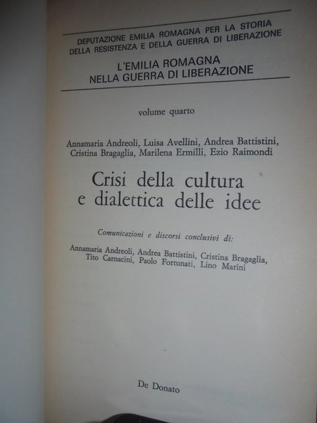 AA.VV. Bari, De Donato Editore, 1976. Crisi della Cultura e dialettica delle idee. In-8° piccolo, cartoncino edit. con alette. 462 pp. Volume quarto. A parte quasi invisibili sottolineature a matita in poche pagine libri in ottimo stato di conservazione. Uff. pacco D. carc.