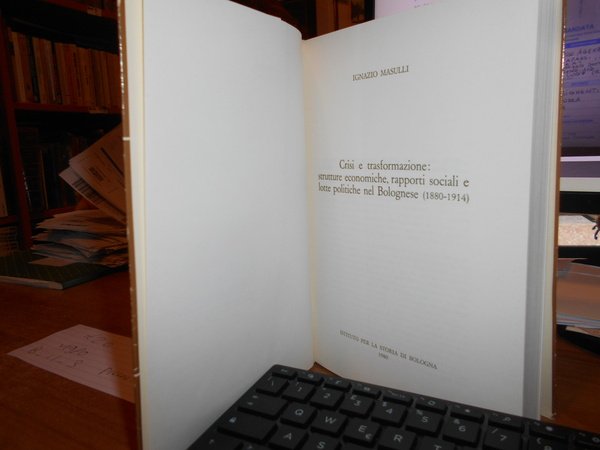 IGNAZIO MASULLI. Imola, Grafiche Galeati, 1980. Crisi e trasformazione: strutture economiche, rapporti sociali e lotte politiche nel bolognese (1880-1914). In-8°, cartoncino edit. con risvolti. 316 pp. Ottimo stato. Uff. B - II - 3 carc.