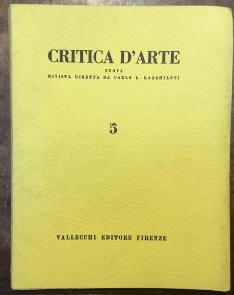 Critica d’Arte. Nuova rivista diretta da Carlo L. Ragghianti. N.5, settembre 1954