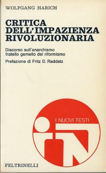 199 p. ; 18 x 11 cm. I nuovi testi, 33. Un classico della critica marxista all'anarchismo, sia quello dell'epoca classica che quello della contemporaneità spesso definito neo-anarchismo. Di questa corrente antiautoritaria del movimento operaio il saggista tedesco critica l'«impazienza rivoluzionaria» prodotta dalla feuerbachiana «immagine-desiderio» che porta inevitabilmente a ignorare la realtà, cioè a sottovalutare i presupposti obiettivi senza i quali non si realizza la rivoluzione proletaria. In cop.: Discorso sull'anarchismo fratello gemello del riformismo. Titolo originale dell'opera: «Zur Kritik der revolutionären Ungeduld». Traduzione di Ursula Olmini Soergel. Brossura editoriale, coperta in cartoncino flessibile plastificato lucido e colorato (b/n e rosso). Titolo impresso al piatto e al dorso. Codice libreria 7175.