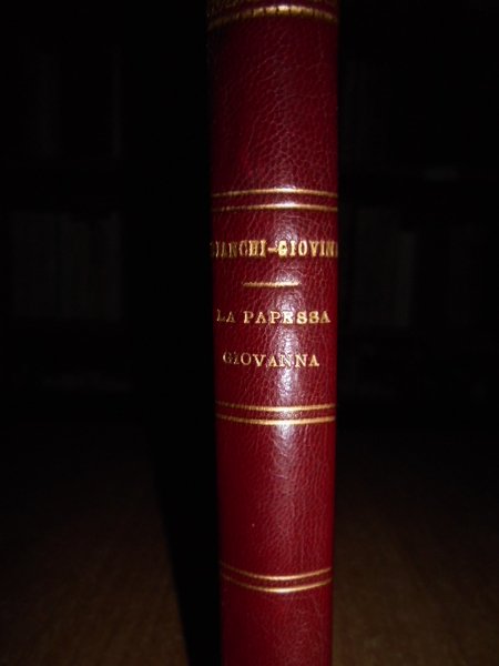 (Critica religiosa) BIANCHI-GIOVINI, A. Milano, Civelli e Comp., 1845. Esame critico degli atti e documenti relativi alla favola della Papessa Giovanna. In-16°, m. pelle coeva. (4), 250 pp. Bell' esemplare con lievi rifioriture dovute alla qualità della carta. Molto raro. Neg. mens. bianca cassa