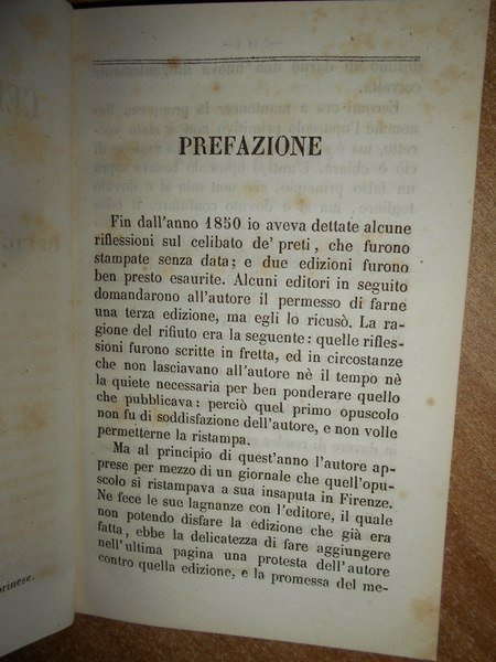 (Critica religiosa) LUIGI, DESANCTIS. Torino, 1862. Il Celibato de' Preti considerazioni religiose, morali, storiche. In-24° grande, m. tela. (viii), 205 pp. Ben conservato. Neg. esot. mob. 51