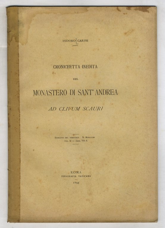 Roma, Tipografia Vaticana, 1893, in-8 grande, br. editoriale (priva della copertina posteriore, dorso rinforzato), pp. 56. Estratto. Qualche fioritura.