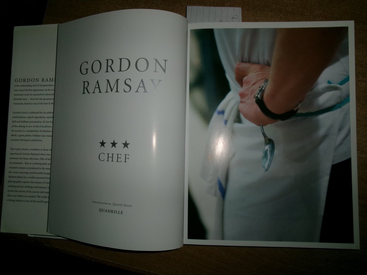 (Cucina) GORDON RAMSAY Chef. Photographs by Quentin Bacon. Quadrille, 2007. In-4°, cartonato edit. bianco con titolo in oro al dorso, sovracopertina. 256 pp. con numerose illustrazioni fotografiche a colori n.t. Ottimo stato con testo in inglese. C - IV - 3 - 3