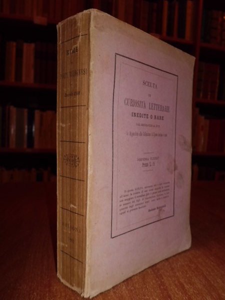 Curiosità letterarie inedite o rare (Bologna). Le RIME dei POETI BOLOGNESI del secolo XIII raccolte ed ordinate da TOMMASO CASINI. Bologna, Gaetano Romagnoli, 1881. In - 16°, br., cop. orig. LXI, (3), 429, (3) pp. Edizione di soli 202 esemplari (es n° 37). Ben conservato ed intonso. Uff. scat. 6