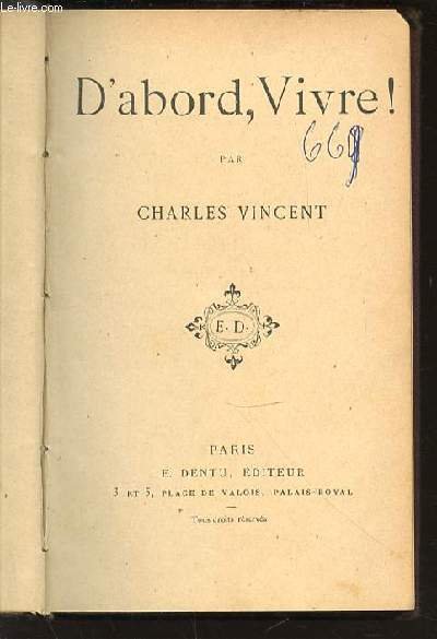D'ABORD, VIVRE ! | Libri antichi e moderni | Vincent Charles
