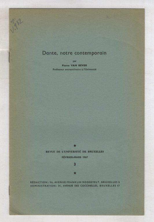 Bruxelles, Revue de l'Université de Bruxelles, 1967, in-8, br. editoriale, pp. 8. Estratto, con invio autografo dell'autore a Carlo Cordié.