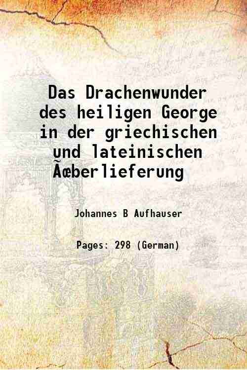 Das Drachenwunder des heiligen George in der griechischen und lateinischen berlieferung 1911