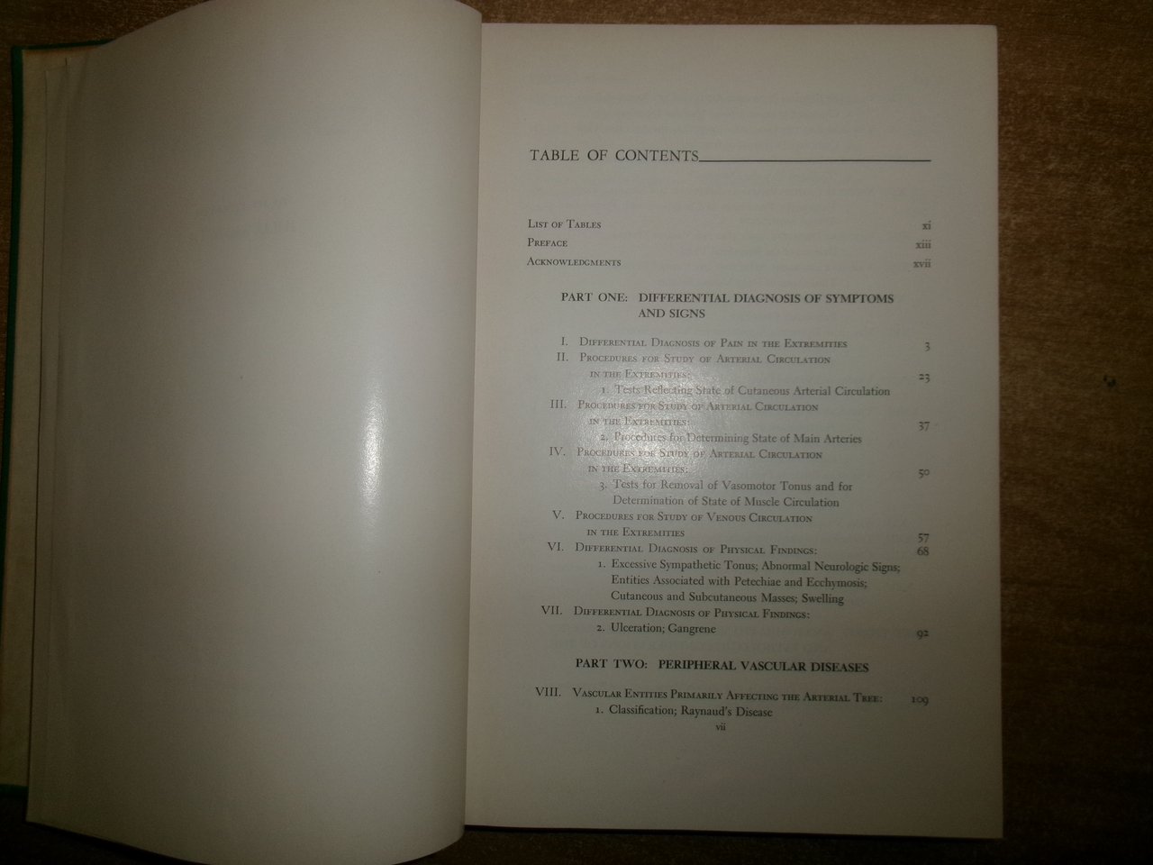 DAVID I. ABRAMSON. United States of America, Hoeber-Harper Book, 1956. Diagnosis and Treatment of PERIPHERAL VASCULAR DISORDERS. In-8°, tela verde edit. con titolo al dorso. xv, 537 pp. con numerose illustrazioni la maggior parte in bianco e nero n.t. Ottimo stato con firma del Dott. Prof. BRUNO MAGNANI al frontespizio. Testo in inglese. Uff. C - IV - 2