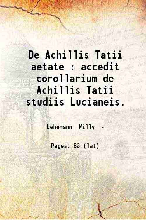 De Achillis Tatii aetate : accedit corollarium de Achillis Tatii studiis Lucianeis. 1910