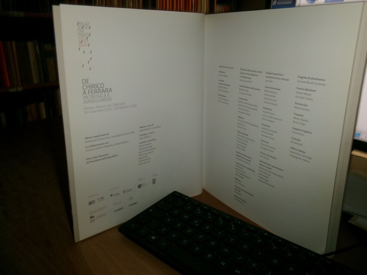 DE CHIRICO a FERRARA Metafisica e Avanguardie. Ferrara, Palazzo dei Diamanti, 14 novembre 2015/28 febbraio 2016. Ferrara, Sate Editore, 2015. In-4°, cartoncino edit. ill. a col. con grandi risvolti. 304 pp. con numerose illustrazioni fotografiche la maggior parte a colori n.t. Come nuovo. Uff. C - I - 5