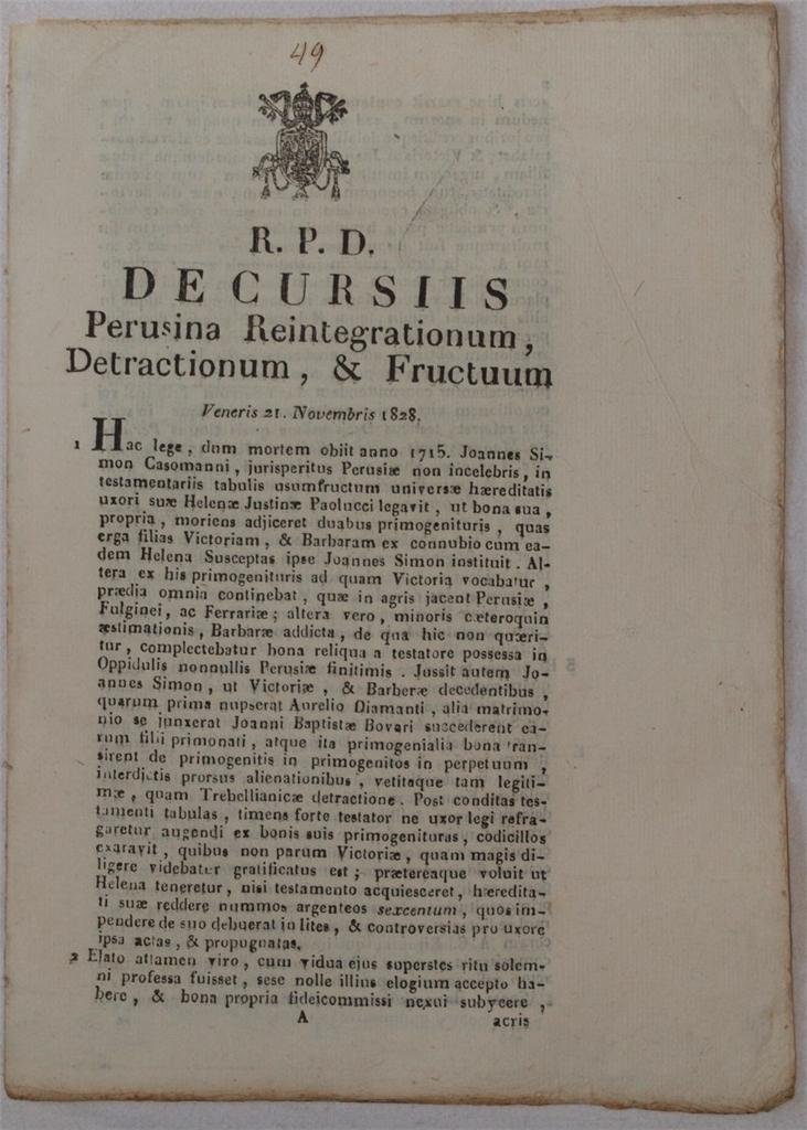 DE CURSIIS PERUSINA REINTEGRATIONUM,vDETRACTIONUM, & FRUCTUUMvVENERIS 21 NOVEMBRIS 1828