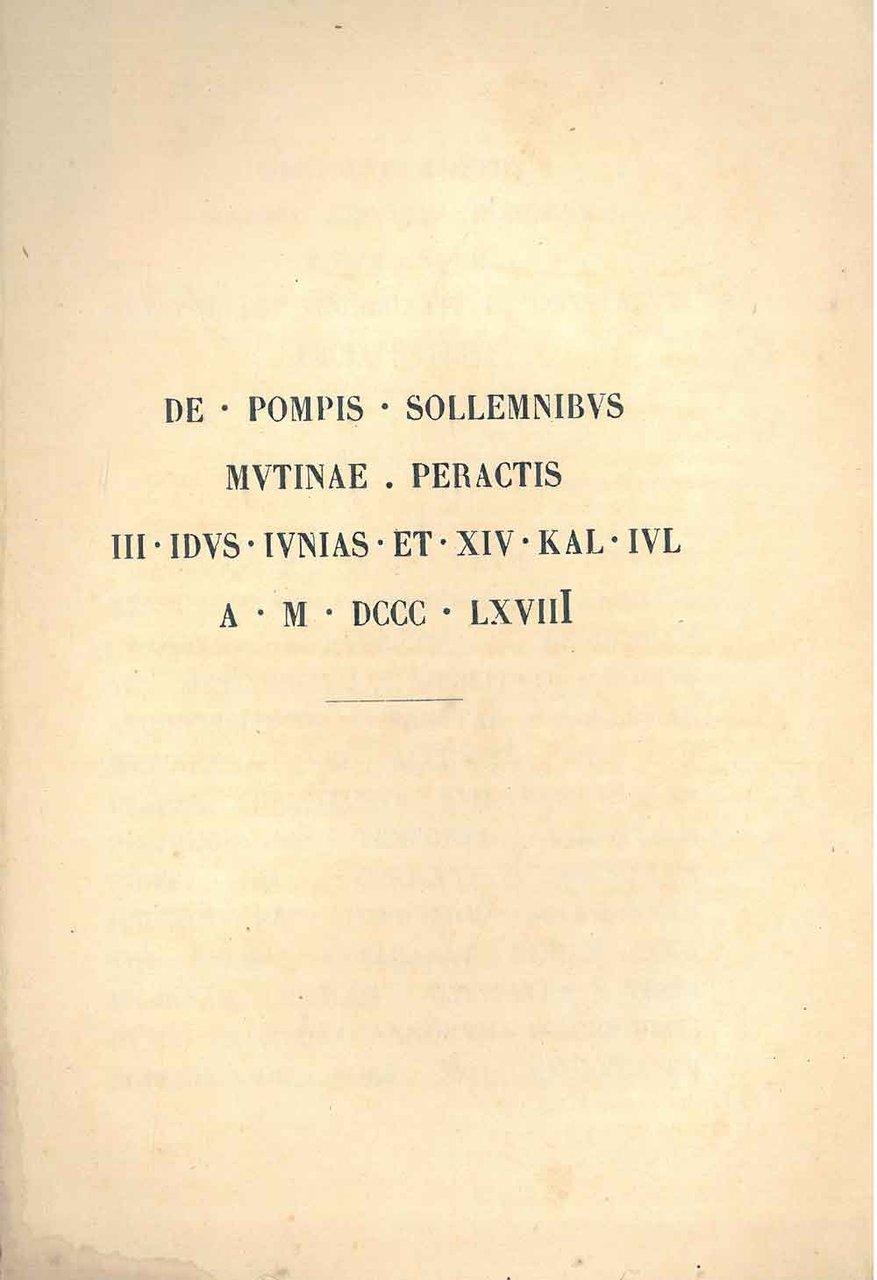 De pompis sollemnibus Mutinae peractis III idus iunias et XIV kal iul a 1868
