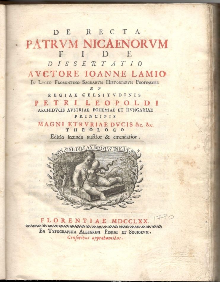 In 4°, pp. (8), 233, (1). Cartonatura moderna con carta marmorizzata. Antiporta con il ritratto dell'autore. Qualche piccolo lavoro di tarlo al margine interno di poche pagine. Copia in buono stato.