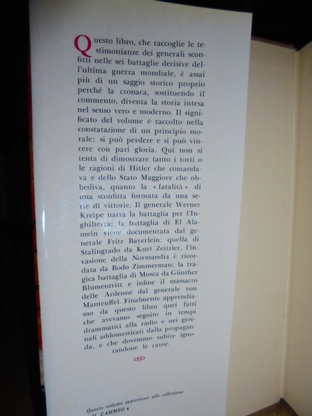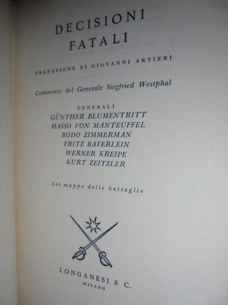 PREFAZIONE DI GIOVANNI ARTIERI. COMMENTO DEL GENERALE SIEGFRIED WESTPHAL. MILANO, LONGANESI & C., 1964. IN-16°, TELA E TITOLO IN ORO SUL DORSO CON SOVRACOPERTINA ILL. A COLORI. 399 PP. CON 6 MAPPE DELLE BATTAGLIE. IN OTTIMO STATO DI CONSERVAZIONE. Neg.storia