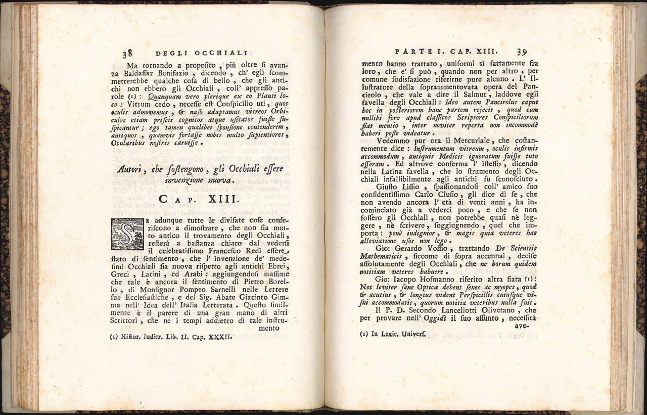 Degli occhiali da naso inventati da Salvino Armati gentiluomo fiorentino trattato istorico di Domenico Maria Manni accademico fiorentino | Libri antichi e moderni | MANNI, Domenico Maria (1690-1788)