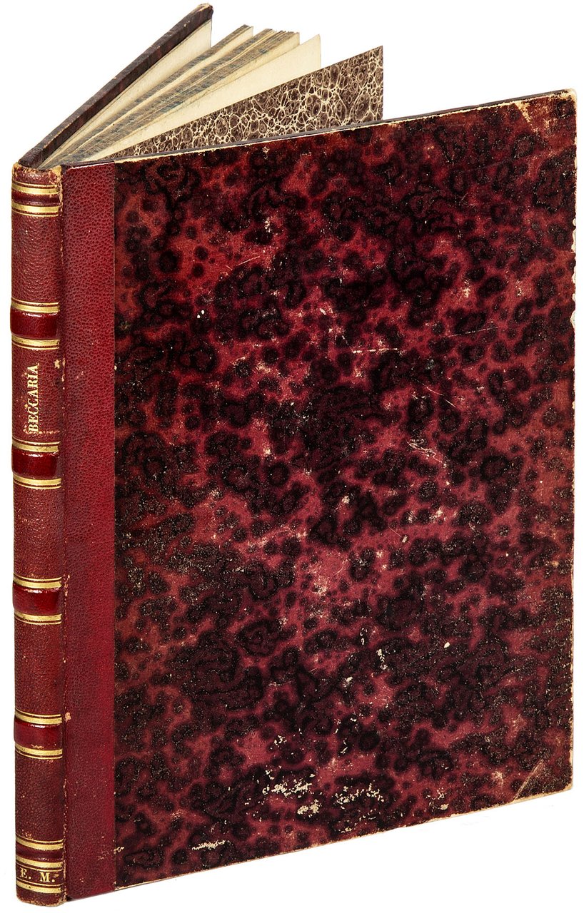 PRIMA EDIZIONE (in uno dei rari esemplari recanti la carta finale d'errata con ventuno emendazioni) della più significativa e celebre opera dell'illuminismo italiano, che al suo apparire fu subito accolta con entusiastici consensi in tutta Europa. Per motivi prudenziali, il nome dell'autore non compare nel testo, che infatti con sentenza pronunciata il 3 febbraio del 1766 fu inserito nell'Indice dei libri proibiti. Dopo la prima edizione livornese, l'opera venne ristampa numerossisime volte, quasi sempre con falsi luoghi di stampa (Monaco, Losanna, Harlem, ecc.), in edizioni più o meno corrette e più o meno legittime - alcune di esse sono contraffazioni di contraffazioni -, a testimonianza dell'immensa risonanza che ebbe e delle difficoltà che incontrò nella sua diffusione. Grazie alla traduzione in tutte le principali lingue del tempo, Dei delitti e delle pene giunse a influenzare, più o meno direttamente, Caterina di Russia, Giuseppe II, Leopoldo II e i legislatori della rivoluzione americana e di quella francese.