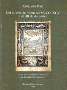 152 pagine. Brossura. Commento dell'editore: Il volume propone la ristampa anastatica dell'edizione romana attribuita a J. Besicken e S. Mayr del cantare dedicato da Giuliano Dati all'alluvione che colpì Roma nel 1495. Accompagnano l'anastatica l'edizione commentata del testo ed i saggi di Anna Esposito, Roma e i suoi diluvi, di Paola Farenga, Dati e il suo "Diluvio" e di Maurizio Gargano, Decus et ordo: 'norma' e 'forma' nella città e nell'architettura della Roma post-avignonese. In appendice il testo del