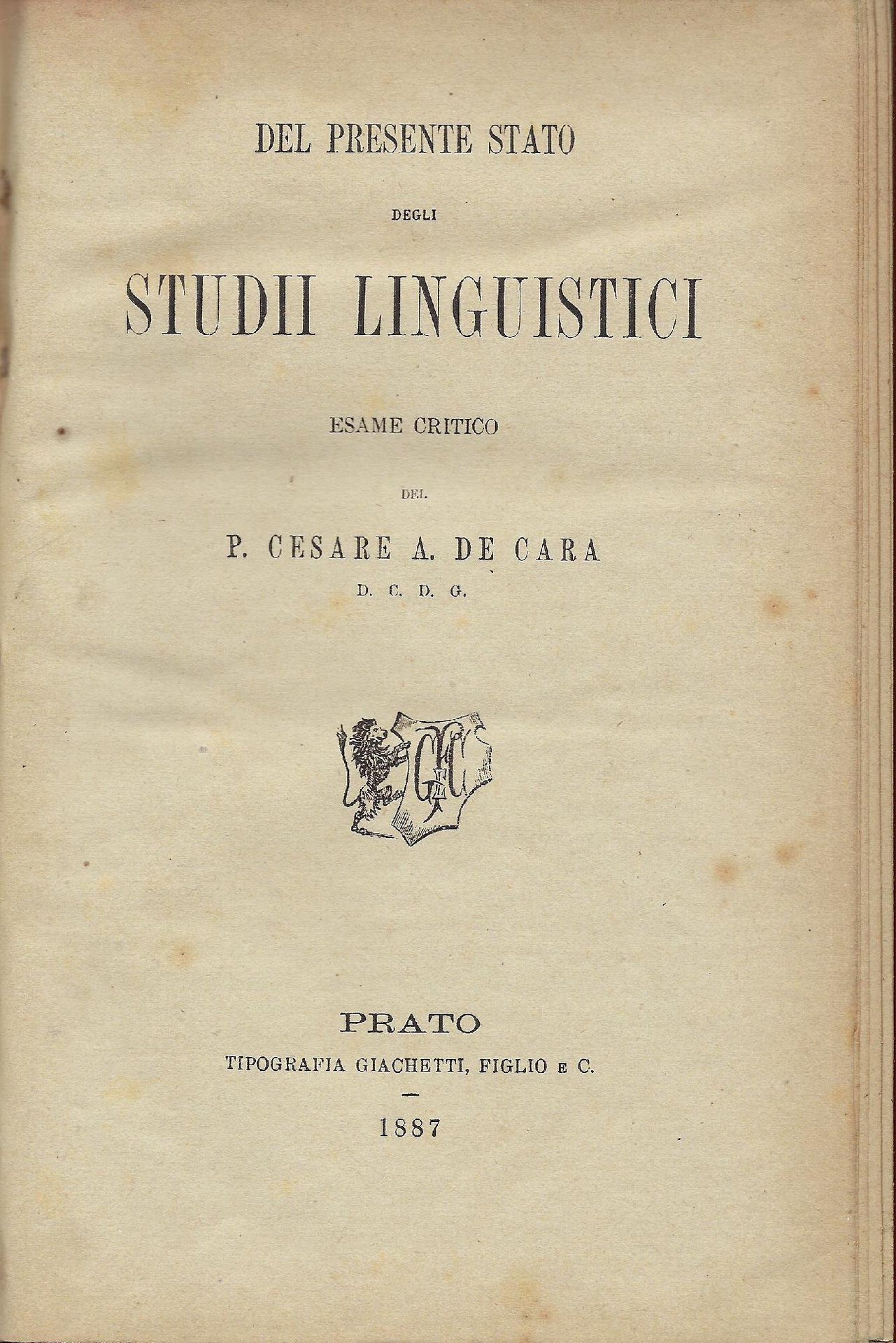 Del presente stato degli studii linguistici. Esame critico | Libri antichi e moderni | De Cara Cesare Antonio, ,De Cara Cesare Antonio