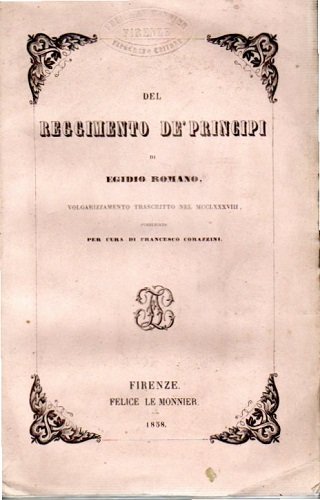 Del reggimento de' principi volgarizzazione trascritta nel MCCLXXXVIII
