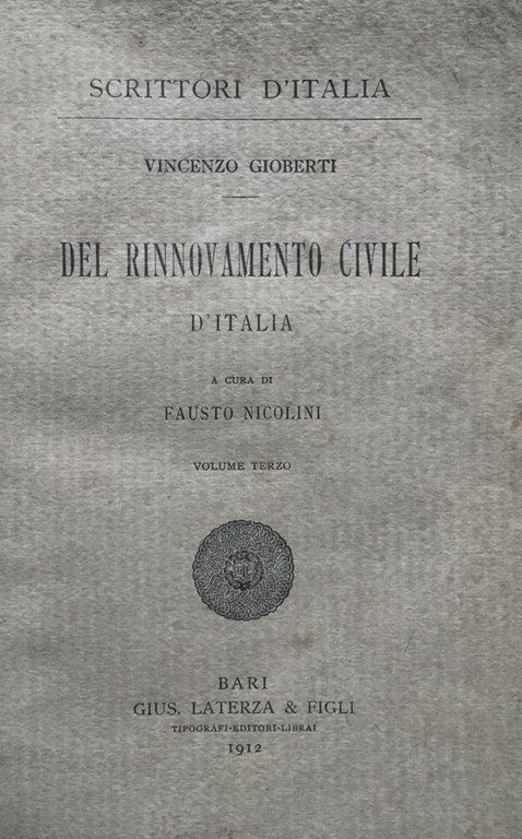 Del rinnovamento civile d'Italia - volume terzo