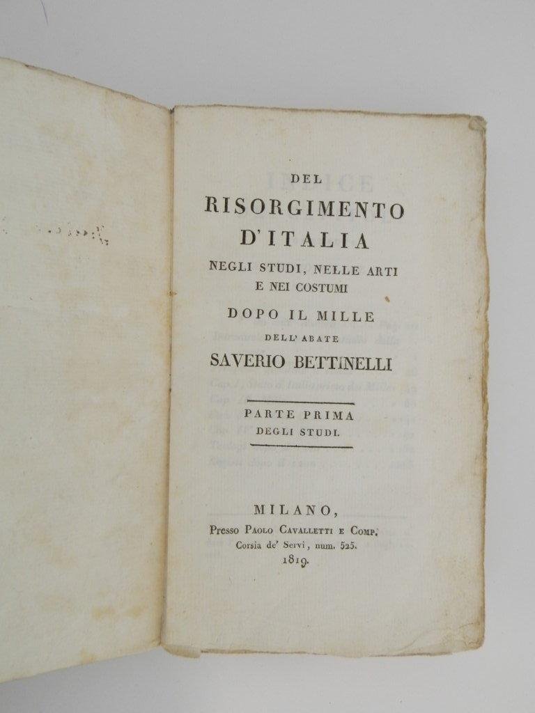 Del Risorgimento d'Italia negli studi, nelle arti e nei costumi dopo il Mille dell'abate Saverio Bettinelli. Parte prima: Degli studi. Parte seconda: Delle arti e de' costumi