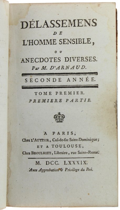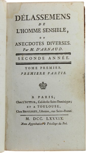 DELASSEMENS DE L'HOMME SENSIBLE. Seconde année. Tome premier - Première partie. | Libri antichi e moderni | D'Arnaud.