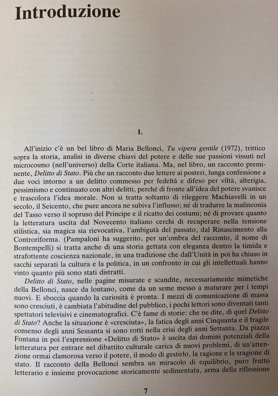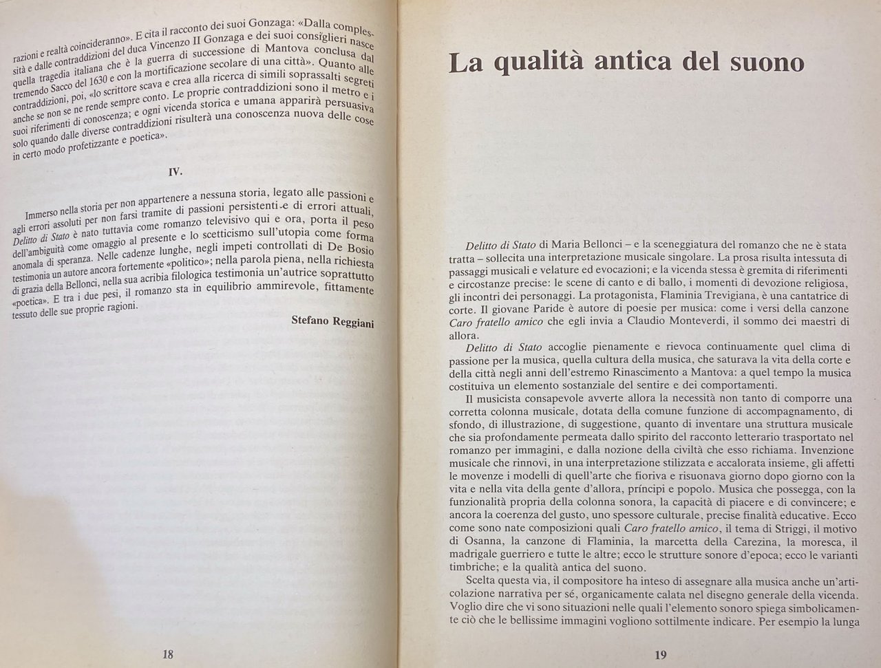 All'inizio c'è il bel libro di Maria Bellonci, Delitto di Stato, analisi del potere e delle passioni vissute in una corte italiana, quella dei Gonzaga a Mantova; una lunga confessione a due voci intorno a un delitto commesso per fedeltà e difeso per viltà, alterigia, pessimismo, e continuato con altri delitti. Poi c'è il lungo lavoro di De Bosio, un appostamento in vista del racconto, una specie di innamoramento che trasforma poco per volta Delitto di Stato nell'altra forma narrativa, diversa e parallela, in un film, anzi in un romanzo televisivo. È qualcosa di più degli amori correnti tra registi e opere letterarie, tra romanzo e cinema che sfociano in peccati di traduzione o nell'orgoglio naturale dell'opera nuova, indipendente. Stretto al nodo, al plot, ai sottintesi della Bellonci, il regista sembra aver tratto dal racconto una implicazione ulteriore, un fascino aggiuntivo. Immerso nella storia per non appartenere a nessuna storia, legato alle passioni e agli errori assoluti per non farsi tramite di passioni persistenti e di errori attuali, Delitto di Stato, ora romanzo televisivo, porta il peso dell'ambiguità come omaggio al presente e lo scetticismo sull'utopia come forma anomala di speranza. Nelle cadenze lunghe, negli impeti controllati di De Bosio, testimonia un autore fortemente politico; nella parola piena, nella richiesta di grazia della Bellonci, nella sua acribia filologica testimonia un'autrice soprattutto poetica. E tra i due pesi, il romanzo sta in un equilibrio ammirevole, fittamente tessuto delle sue proprie ragioni.
