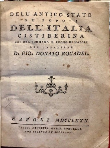 Dell’antico stato de’ popoli dell’Italia cistiberina che ora formano il Regno di Napoli | Libri antichi e moderni | Rogadei Giovanni Donato
