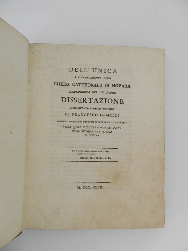 Dell'unica e costantemente unica chiesa cattedrale di Novara riconosciuta nel suo duomo dissertazione apologetico-storico-critica di Francesco Gemelli ... nella quale si illustrano molti punti della storia ecclesiastica di Novara