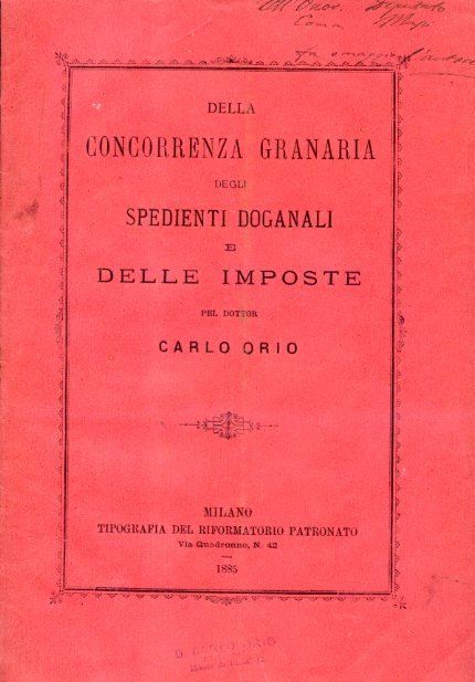 Della concorrenza granaria degli spedienti doganali e delle imposte | Libri antichi e moderni | Orio Carlo