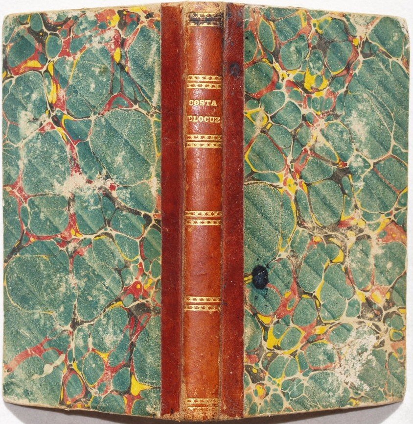 In 16. Dim. 17x11 cm. Pp. 168. Interessante opera sull'"arte del perfetto scrivere" del poeta, filosofo e letterato italiano Paolo Costa (1771-1836). All'interno la chiarezza, la metafora, l'eleganza, l'armonia, il discorso, lo stile nello scrivere. Alla fine dell'opera appendice sul modo di arricchire l'italiano senza alterarne la purità dell'Abate Michele Colombo. Bella legatura in mezza pelle con titolo in oro al dorso. Antica firma alla pagina di sguardia. In buone condizioni. Copertina in mezza pelle con titolo in oro al dorso in buone condizioni generali con lievi usure ai margini e dorso. Legatura in buone condizioni. All'interno le pagine si presentano in buone condizioni con fioriture. Interesting work about the "Art of the perfect writing" of the italian poet, phylosophers and litterate Paolo Costa (1771-1836). Inside clarity, metaphor, elegance, armony, the speech, style in writing. At the end appendix abotu the way to enrich italian language without altering purity by Michele Colombo. Beautiful half leather cover with golden title in the spine. Ancient signature in the first endpaper. In good conditions. Half leather cover with golden title in the spine in good general conditions slightly worn in the edges and spine. Binding in good conditions. Inside pages are in good conditions with foxings.