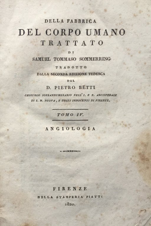 Della fabbrica del corpo umano. Trattato di S.T. Sommerring. Tomo IV angiologia