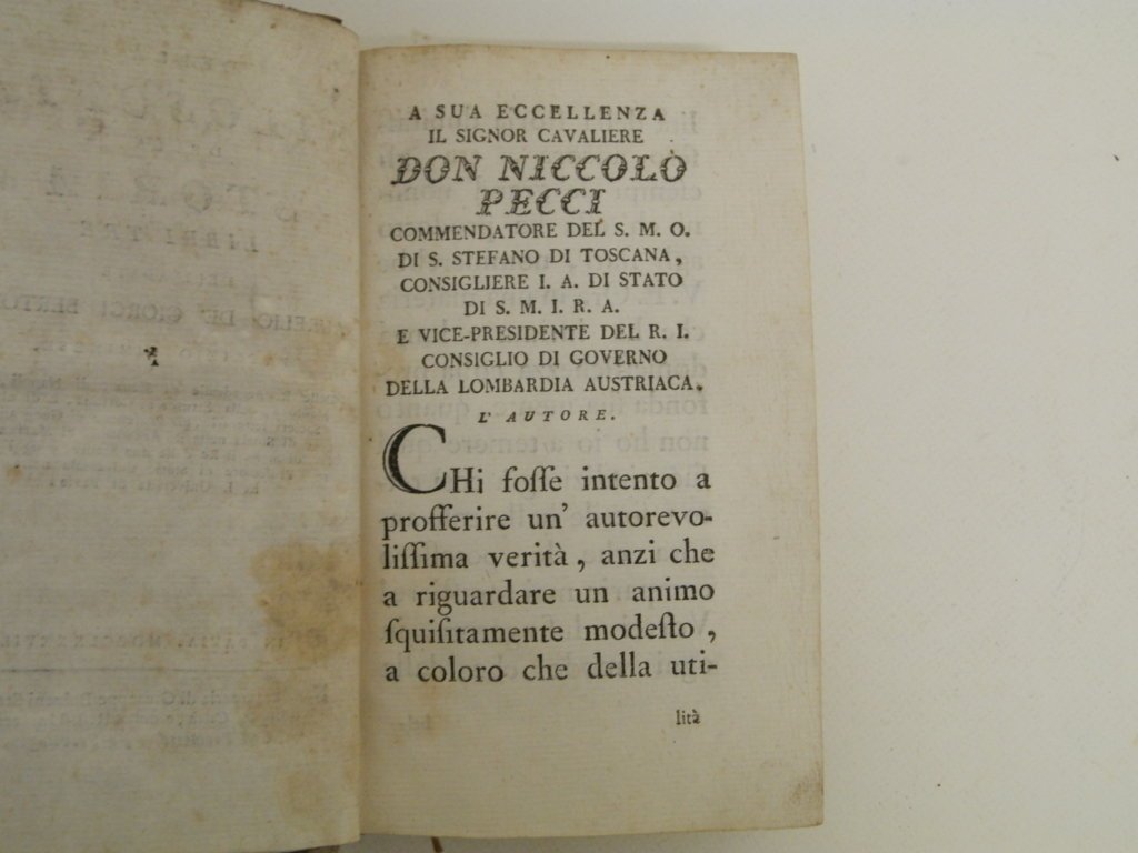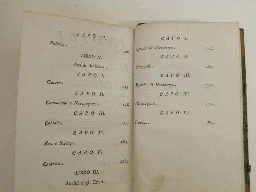 8^, mm 195x120, pp. (8), 412, (6) di indice, legatura in mezza pelle marrone con piatti su cartone, tassello cartaceo con titolo manoscritto al dorso, segni d'usura ai piatti, ma buonissima conservazione, pagina del frontespizio una macchia e tracce di sporco, il resto delle pagine in perfette condizioni. Edizione originale, non comune, del più importante saggio del Bertola, letterato riminese e precursore in una disciplina che troverà terreno feritle solo in epoca ottocentesca.. *** TUTTI I NOSTRI LIBRI SONO VISIBILI PREVIO CONTATTO MAIL O TELEFONO NELLA NUOVA SEDE DI MILANO: LIBRERIA COSMOPOLIS, VIA JOMMELLI, 22. ***