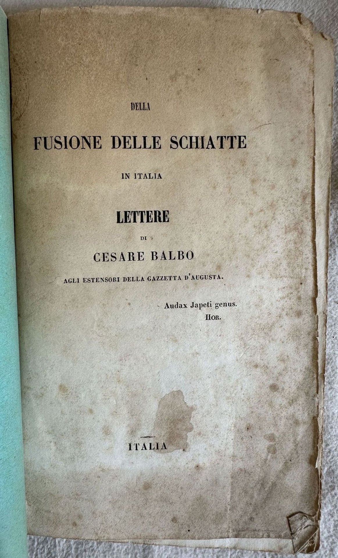 DELLA FUSIONE DELLE SCHIATTE IN ITALIA LETTERE DI CESARE BALBO AGLI ESTENSORI DELLA GAZZETTA D'AUGUSTA
