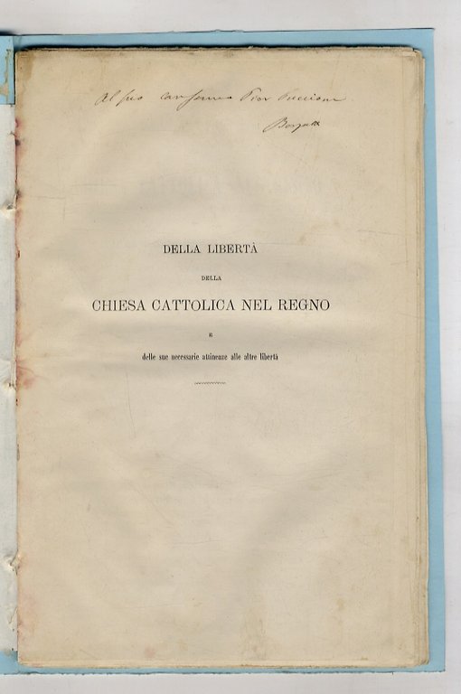 Della libertà della Chiesa cattolica nel Regno e delle sue necessarie attinenze alle altre libertà. Lettera dell'ex deputato Francesco Borgatti agli elettori del collegio di Cento.