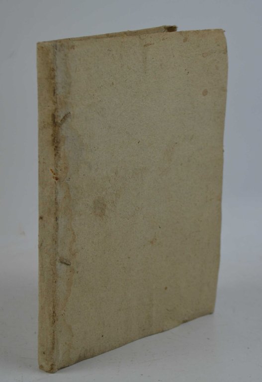 Cm. 23, pp. (8) 115 (1). Leg. coeva in cart. alla rustica con nervi passanti. Esemplare con alcuni difetti sparsi, più evidenti al frontespizio. Peraltro marginoso ed in discreto stato di conservazione.
