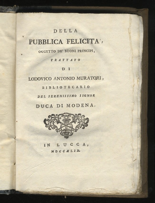 Della pubblica felicità oggetto de' buoni principi, trattato di Lodovico Antonio Muratori, bibliotecario del Serenissimo Signor duca di Modena.