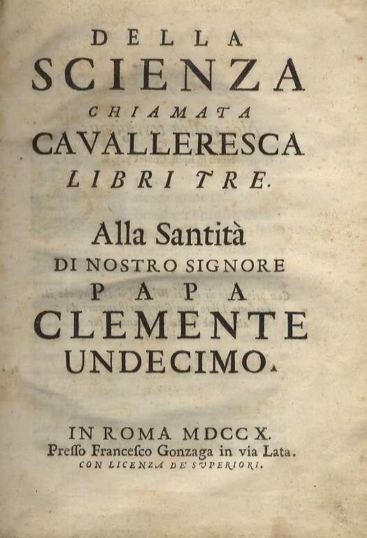 Della scienza chiamata cavalleresca libri tre. Alla santità di nostro signore papa Clemente undecimo.