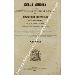 Della vendita ovvero comentario sul titolo VI libro III del Codice Civile. Nuova traduzione accresciuta del confronto delle opere di Duranton, Duvergier, Favard de Langlade, Merlin, Dalloz, Boileux, Demante, Zachariae, Delvincourt, Malleville, Rolland de Villargues, Champonnière e Rigaud, Jourdan, Magliano e Carrillo, Liberatore, De Bernardinis, ecc. Che offre sotto ciascuno articolo del codice il paragone colle leggi civili l'indicazione delle diverse disposizioni legislative emanate nel Regno delle Due Sicilie la giurisprudenza francese e la napoletana dall'Avv. V. De Matteis