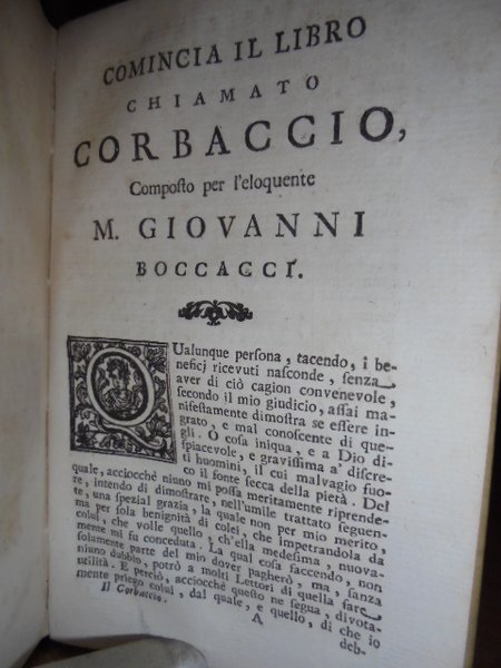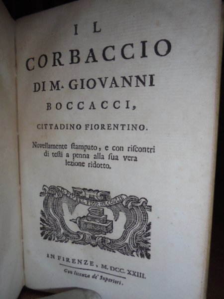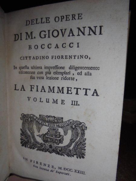 DELLE OPERE DI M. GIOVANNI BOCCACCI CITTADINO FIORENTINO IN QUESTA ULTIMA IMPRESSIONE DILIGENTEMENTE RISCONTRATE CON PIÙ ESEMPLARI, ED ALLA SUA VERA LEZIONE RIDOTTE. La Fiammetta. Il Corbaccio.