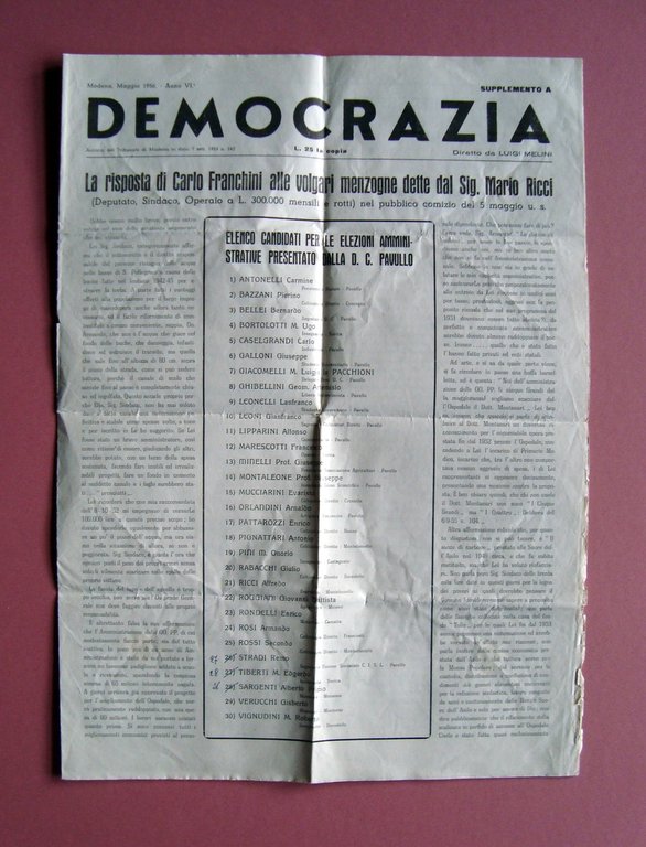 Democrazia Elezioni Pavullo Anno VI Modena Maggio 1956 Candidati Problemi