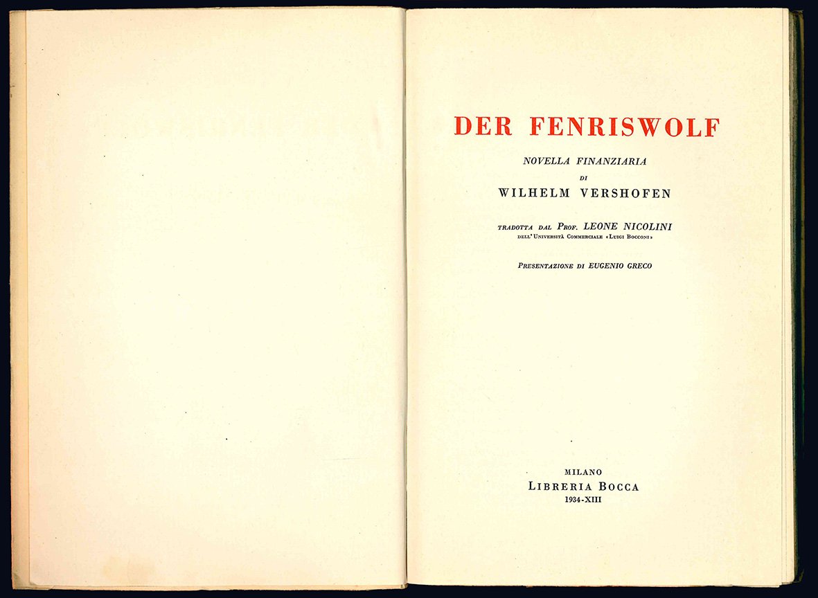 Der Fenriswolf. Novella finanziaria di Wilhelm Vershofen. Tradotta dal Prof. Leone Nicolini dell'Università commerciale "Luigi Bocconi". Presentazione di Eugenio Greco.