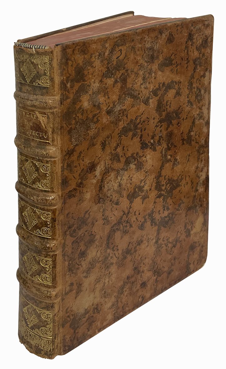 In 4to (mm 244x184); pp. [24], 797, [3]. Con LXV tavole calcografiche a piena pagina nel testo. Segnatura: a4 e4 i4 A-Hhhhh4. Bianco il verso di c. Hhhhh3 e c. Hhhhh4. Marca calcografica al frontespizio, testatine ed iniziali calcografiche. Il nome dell'autore si ricava dalla dedica a c. a4v. Piena pelle bazzana con dorso a cinque nervi. Piccoli fregi e titolo in oro su tassello al dorso. Tagli rossi. Minime mancanze alle cuffie, lievi abrasioni ai piatti. A tratti un po' brunito.