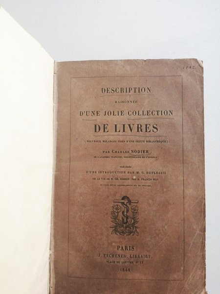 formato 22,5X14. Rilegatura coeva con brossura coservata con dorso in pelle e scritte in oro. Piatto marmorizzato pagine 492. Introduzione di G.Duplessis. Ottimo esemplare