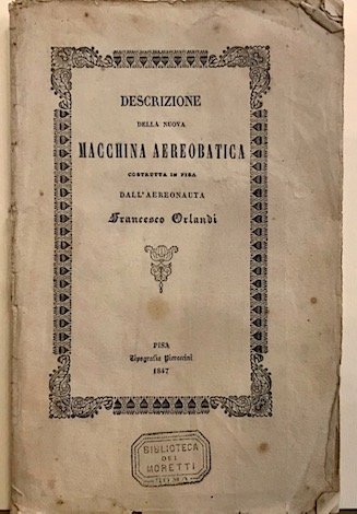 Descrizione della nuova macchina aereobatica costrutta in Pisa. | Libri antichi e moderni | Orlandi Francesco