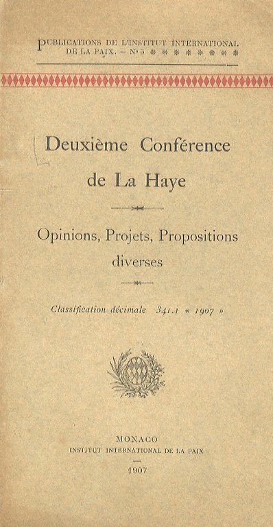 Monaco, Institut International de la Paix, 1907, in-8, br. edit., pp. 107, [5]. "Publications de l'Institut International de la Paix", n. 5.